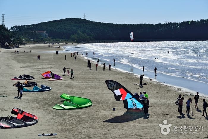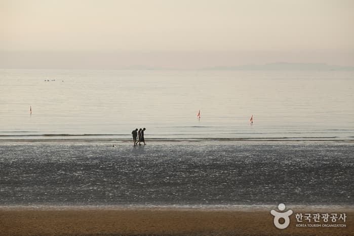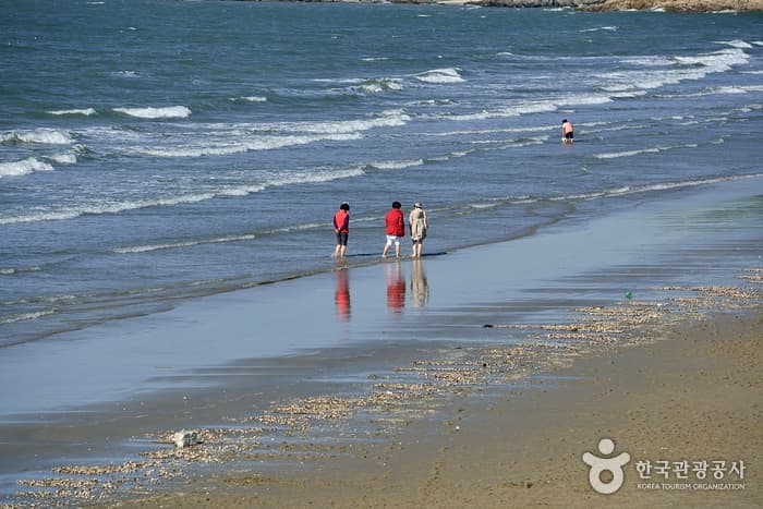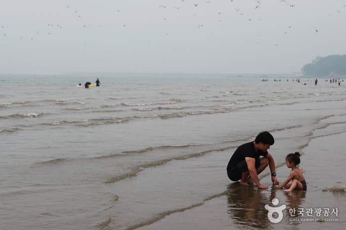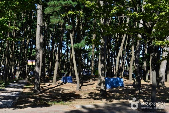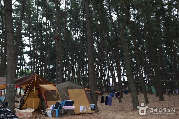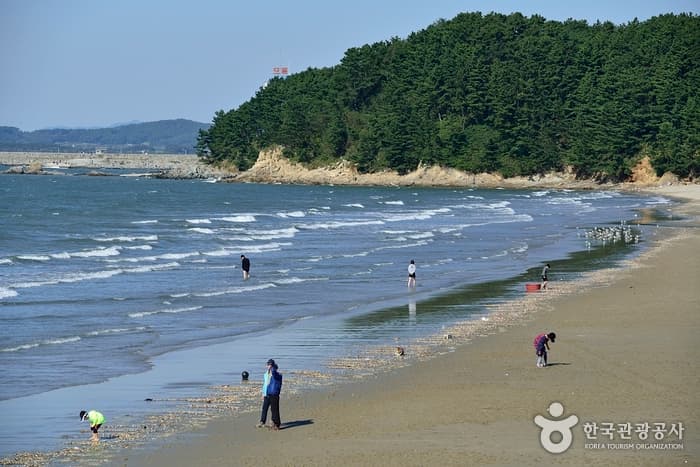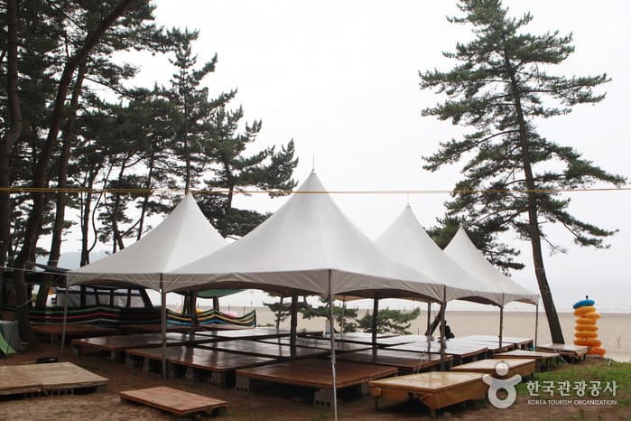 Chunjangdae Beach offers a gentle 1.5-degree slope and a thick grove of pine and acacia trees, making it popular as a summer vacation destination. A meeting plaza is located at the midpoint of the beach, and walking paths connect to nearby islands. At low tide, visitors can catch shellfish and flatfish in the mudflat. Nearby attractions include the Busa Sea Wall, Hongwonhang Port, and Camellia Grove in Maryang-ri.