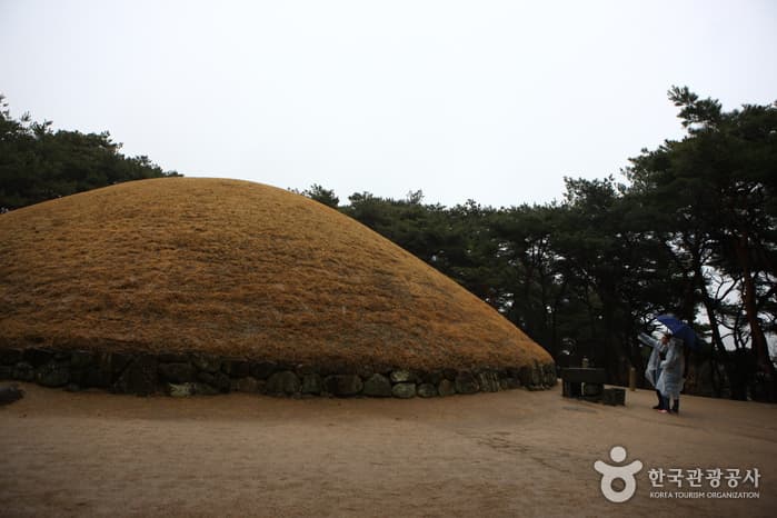 The Tomb of Queen Seondeok is a round tumulus with a circumference of 73 meters. Aside from the fact that it is circled by a protective two-layer rock, the tomb has no other unique features. As the oldest daughter of King Jinpyeong, Queen Seondeok became the first queen of the Silla Kingdom. During the 16th year of her reign, Bunhwangsa Temple and Cheomseongdae Observatory were built. She also ordered the construction of the famous nine-story wooden pagoda of Hwangyongsa Temple, a significant achievement of Buddhist architecture. While many of her efforts laid the foundation for the unification of Three Kingdoms of Korea, Queen Seondeok’s reign was plagued by rebellion and strife and she died in 647 during a rebellion, 23 years before unification was realized.