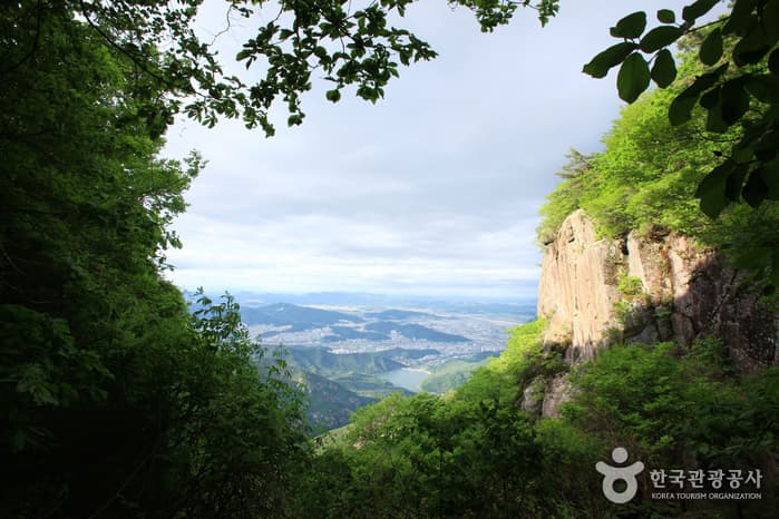 Geumosan Mountain (976 m) is part of the Sobaeksan Mountain Range, and was designated as a provincial park in 1970. Daehyepokpo (Myeonggeum) Falls can be accessed via cable car. Additional attractions within the park include Yaksaam Hermitage, Rock-carved Standing Bodhisattva, Haeunsa Temple, Doseongul Cave, and Chaemijeong Pavilion.