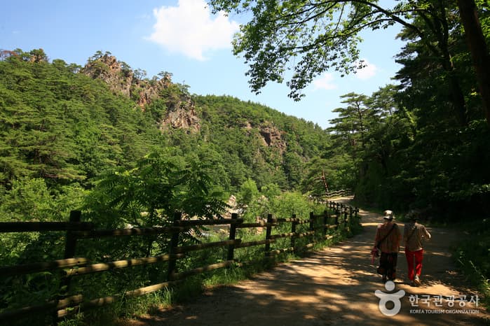 The 13 km-long Bulyeongsa Valley is also found around Bulyeongsa Temple. With unique rock formations and thick forest, the valley creates an almost mystical atmosphere. Even though Bulyeongsa Valley is not as magnificent or splendid as Cheonbuldong Valley at Seoraksan Mountain or Mureung Valley and Bogyeongsa Valley at Odaesan Mountain, it offers a serene and beautiful view against the backdrop of Cheonchuksan Mountain.