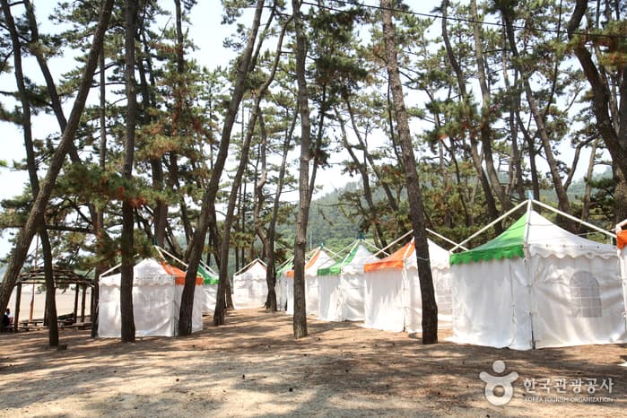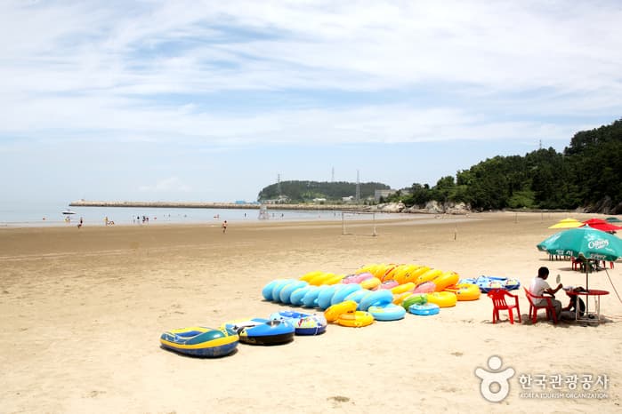 Small islands dot the sea in front of the beach and the view of the fishing boats drifting by is very peaceful. The sunset on the west gives off a different vibe from the sunrise of the east. Near the beach area is a coastal drive way with a wonderful view of the coast. Dombaeseom Island, famous for ocean fishing, and Chilsando Island are lined up more or less in a row.
