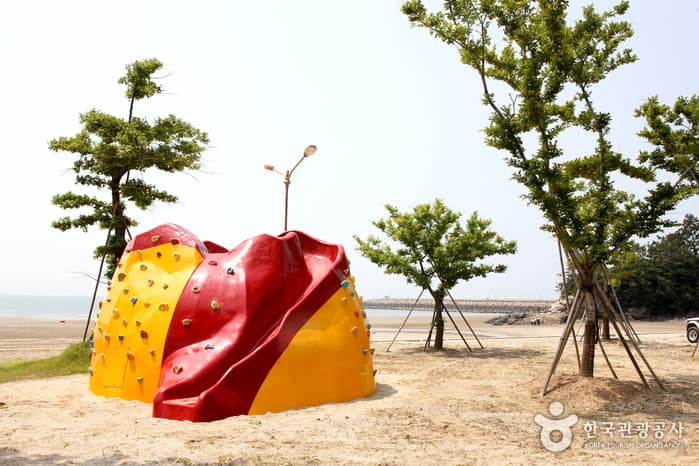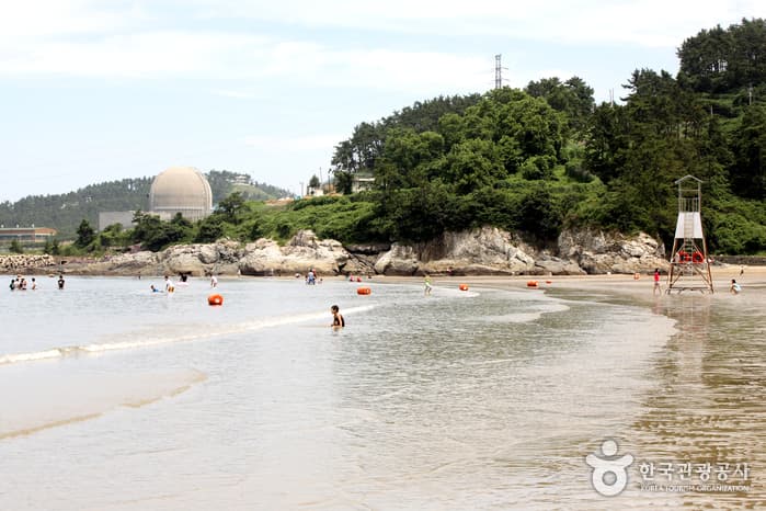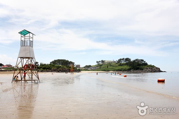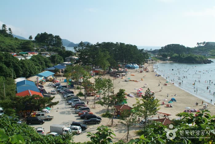 Located 24 kilometers west of Yeonggwang-eup, Gamami Beach was first opened in 1925. The beach is 1 kilometer in length and 200 meters in x_width, and has the shape of a half moon. Around 200 pine trees encompass the area and form a dense cozy forest. The water is only about 1 to 2 meters deep and its clear waters make it one of the three best beaches in the southwestern part of Korea.