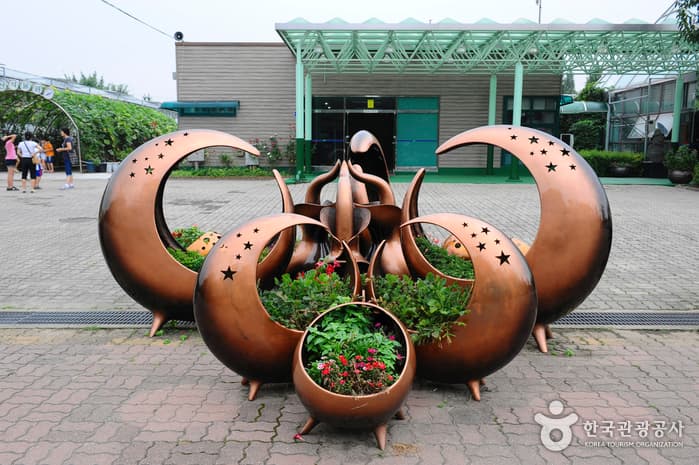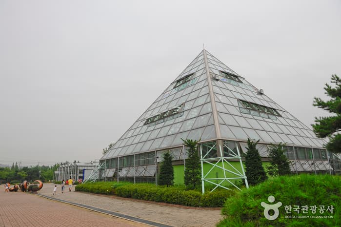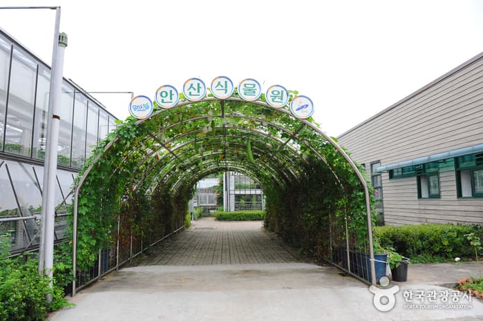Opened in 2001, the Ansan Botanical Garden has three halls. The first hall (382.81㎡) is a tropical garden, home to 98 species, including palm trees. The second hall (846㎡) features 177 species in 11 families of floral plants, such as irises. The third hall (846㎡) features 177 species in 4 families of marsh plants. Outside gardens include a rose garden, fruit tree garden, wild plant garden, plant succession garden, and a pond featuring a total of 46 plants including red momo botan lotus. The botanical park has a pyramid-shaped, modern greenhouse that is a source of pride for Ansan City. The park is also connected to Seongho Park.