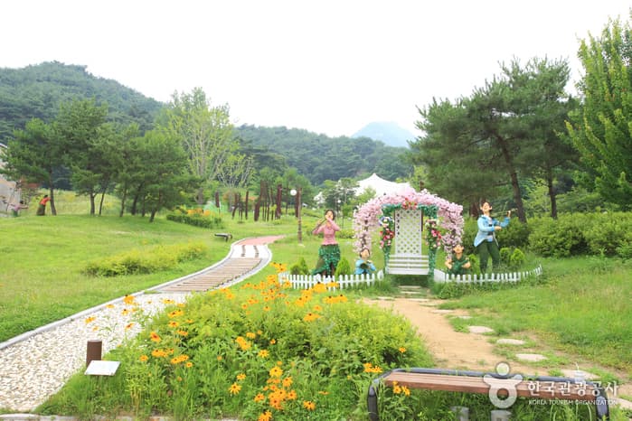 A 2 kilometers trek through the valley from Yongmunsa Temple will bring you to Yonggakbawi Rock, shaped like a dragon’s horn, halfway up the mountain. 1km away from Yonggakbawi Rock lays a huge boulder, Court Rock, on which 100 people can easily sit at the same time. There is also an amusement park that provides great entertainment for children, consisting of a rapid ride, a Viking-boat, a merry-go-round, bumper cars, a family coaster, and other rides.