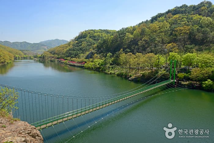The reservoir boasts a grand size with a 4-kilometer circumference making it the largest reservoir in Haman. However, it is shaped like a snake, making it impossible to see the starting and ending points at the same time. It is well-known as a relaxing vacation spot among local families.