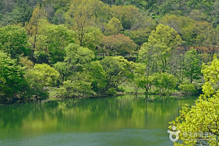 Ipgok County Park was once a reservoir used for agricultural water during the Japanese colonization period. Near the reservoir, a dense pine tree forest can be seen along the steep cliff and a trekking path winds through the forest. In spring, cherry blossoms provide picturesque scenery in the vicinity of the area and azaleas bloom on the ridges and cliffs as well. A sports field equipped with stands is located in the upper area.