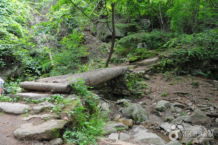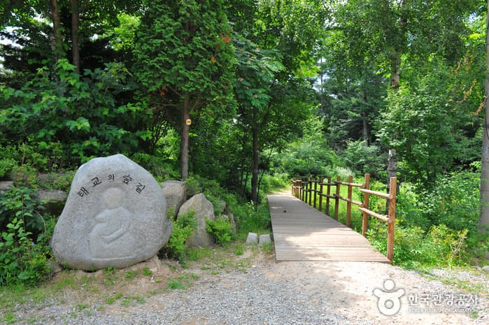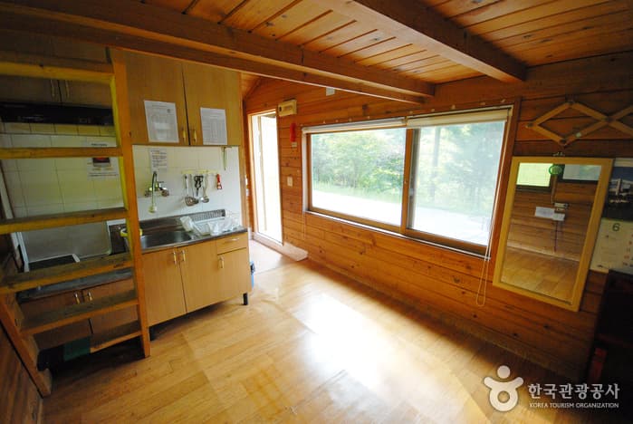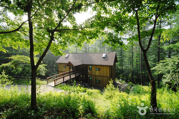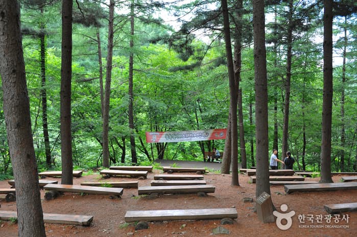 Jungmisan Recreational Forest unfolds at the end of a lovely drive along the famous Nongdachigogae Road, the highest ridge road in the vicinity of Seoul. The forest boasts a striking landscape of thick groves of trees and a view overlooking the Namhangang River. During some mornings, the forest’s log cabins are veiled by a thick fog, further adding to the beautiful natural ambience.