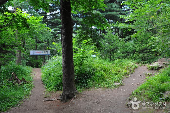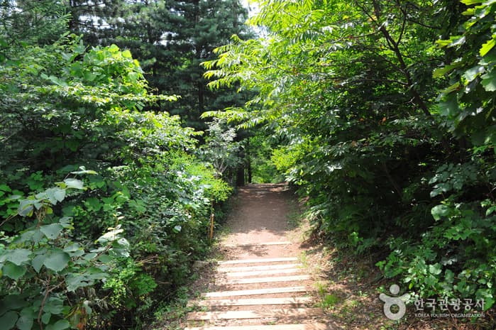 Rising 834 meters above sea level, Jungmisan Mountain is a popular sunrise destination frequented by throngs of hikers every year. Thick forests of pine trees create a rooftop of branches from spring to fall. Being surrounded by the tall mountains of Baegunsan, Yumyeongsan, and Yongmunsan, Jungmisan Mountain feels like it is in the inner mountainous region of Gangwon-do, although it is close to Seoul.